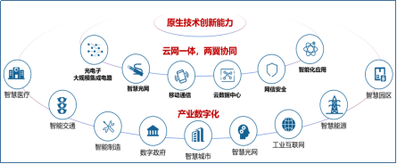 烽火在数字化转型的实践中,以原生技术创新新能力为前提,以“云网一体,两翼齐飞”,赋能行业数字化的发展。“一体”就是以“云网一体化”为主体,包含智慧光网、智简5G,以及低碳云数据中心的解决方案和产品等,构成了新型数字基础设施底座的支撑。“两翼”分别对应我们的光电子和集成电路产业,以及智能化应用业务,构成了产业链供应链安全方面和智慧城市、数字政府实际应用的有效支撑。