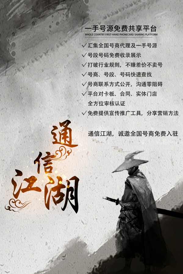 如果你是手机靓号一手号商,为难以发展代理而苦恼;或者你是一个刚入行的新人代理,为找不到一手号源而发愁...用手机登录通信江湖平台就能轻松解决。