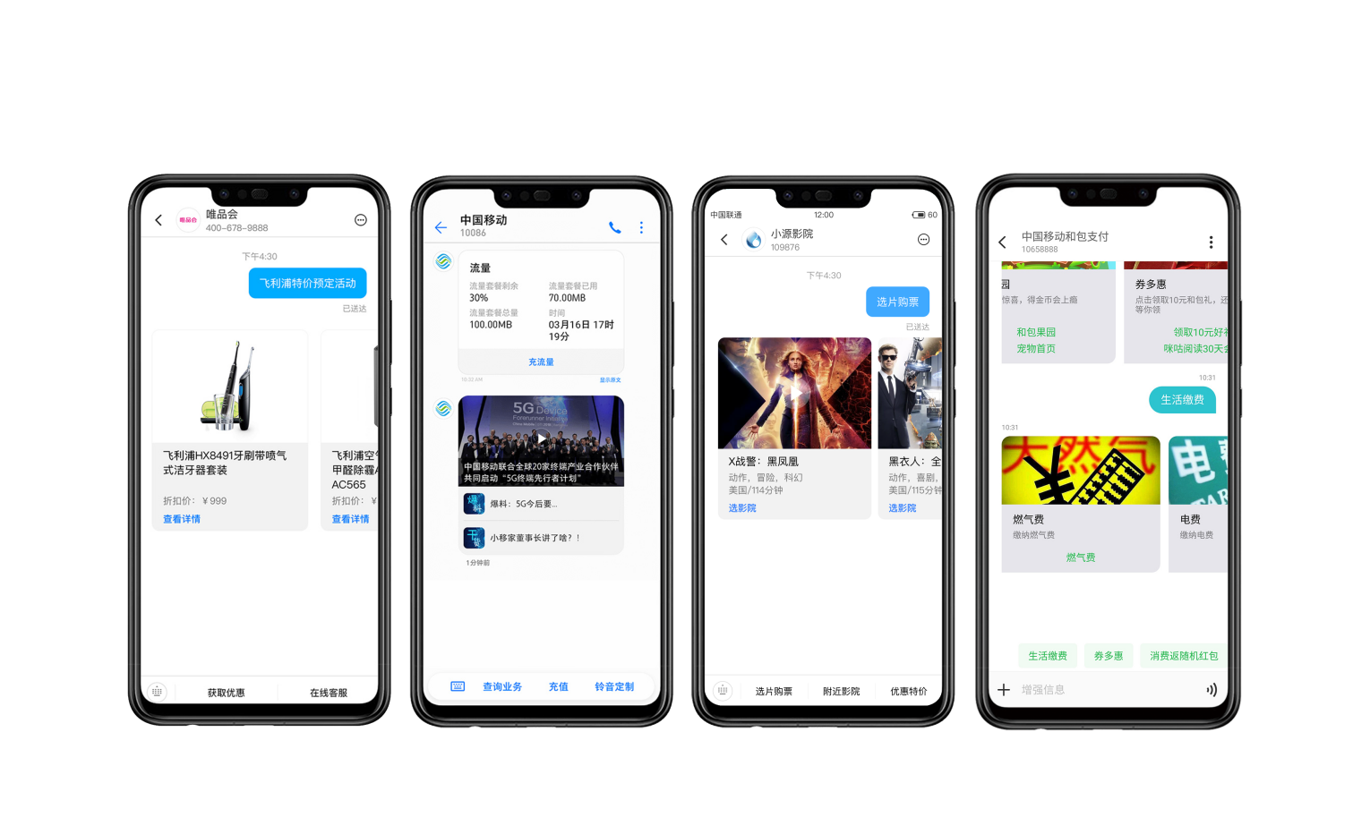 5G消息,即RCS(Rich Communication Suite)富媒体消息,基于GSMA RCS UP标准,以智能手机上的原生短信为入口,手机号码即用户ID,主要分为点对点消息(个人消息)和行业消息。其中,行业消息支持Chatbot(聊天机器人)智能交互功能,用户无需安装或关注,在消息窗口即可完成搜索、分享、聊天、支付等交互体验,实现消息即服务,具有高触达率、富媒体性、强互动性、便捷服务能力等特点。