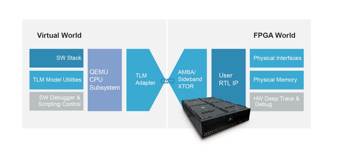HIPK作为方便易集成的软硬件协同验证平台,充分利用了虚拟原型和FPGA原型验证系统的优势,在项目早期就可为用户提供一个软件开发调试以及IP子系统软硬件协同验证的环境,从而加速软硬件验证的收敛。虚拟侧处理器支持ARM/RISC-V/x86主流指令集架构,transactor支持AMBA接口,可满足大多数软硬件设计需求。除FPGA原有调试手段外,HIPK提供了丰富的API接口以方便用户直接调试FPGA,同时还支持基于Eclipse CDT的软件调试环境,提升软件开发人员的操作体验。另外值得一提的是,目前FPGA原型验证系统支持合见工软UV APS与Phine Design系列产品,并提供了FMC、GTY等多种扩展接口、内嵌和外接存储方案,大大扩展了用户的应用场景。