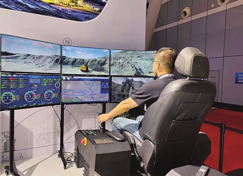 坐在空调房里,工作人员通过操作手柄就能控制矿场的大型挖掘机,依据指令准确地完成一系列操作……这是2022世界5G大会现场展出的5G远程挖矿。