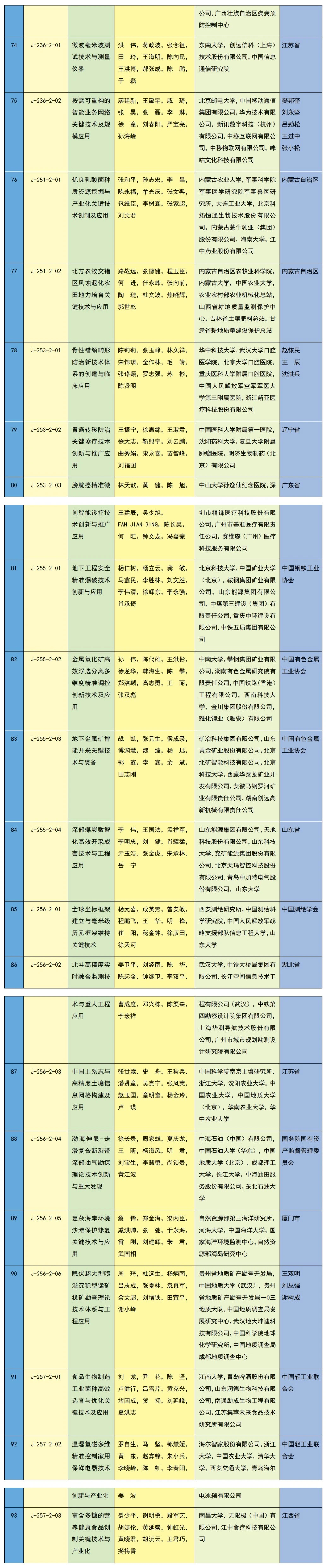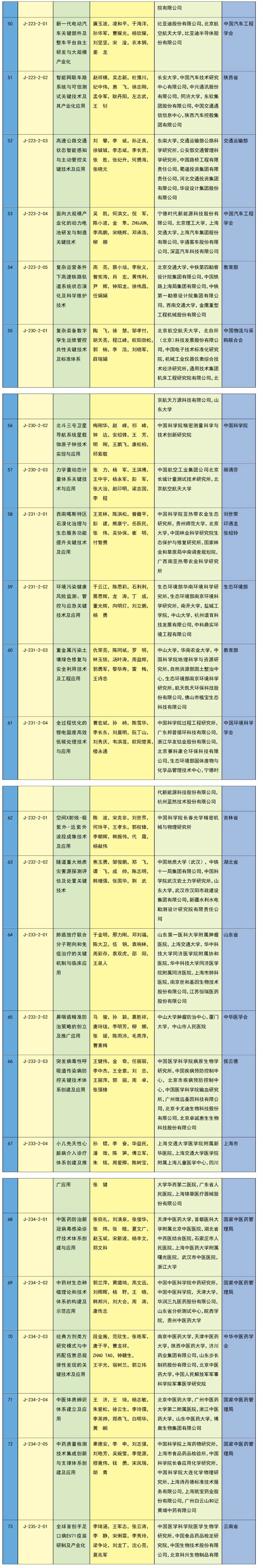 以下为2023年度国家科技进步奖(一等奖、二等奖)名单: