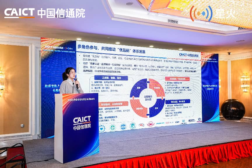 中国信通院工业互联网与物联网研究所品牌市场部张祥宇分享了《星火优品码公共服务平台及服务案例》,该平台依托“星火・链网”构建了标准化赋码与可信追溯体系,通过“一物一码”实现产品全生命周期溯源,并有效打通跨境贸易信息壁垒。平台积极搭建“金砖 +”“东盟”“一带一路”等国际数字贸易合作桥梁,为产业增信赋能、保障消费者放心消费提供坚实支撑,助力品牌强国与质量强国建设。
