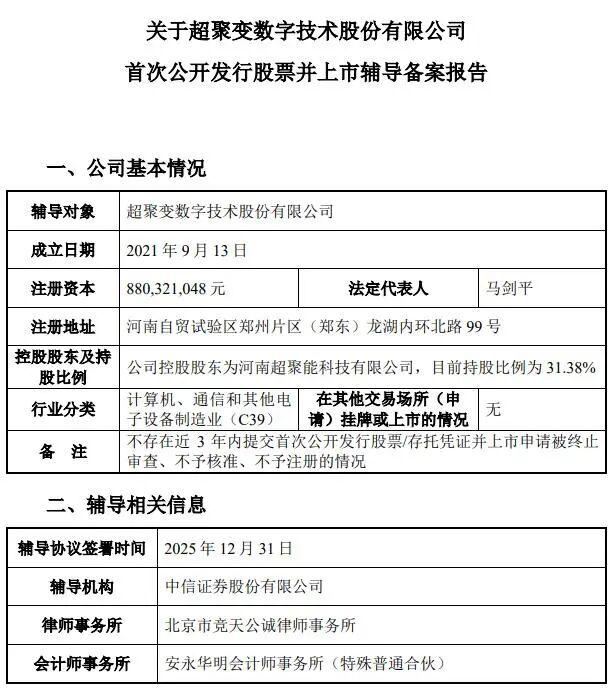 C114讯 1月7日消息(九九)继国产GPU双雄——摩尔线程、沐曦集成电路成功上市后,中国移动战略投资的算力巨头——超聚变正式启动上市辅导,由中信证券担任辅导机构。