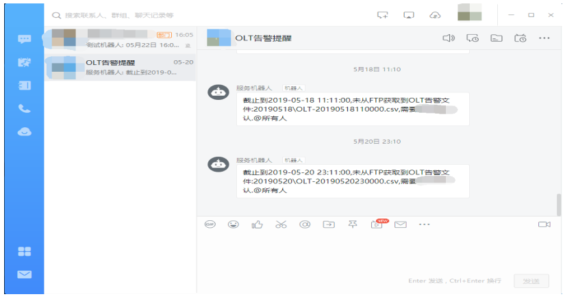 钉钉(DingTalk)由阿里巴巴集团开发,用于商务沟通和工作协同。通过钉钉的webhook自定义机器人,可以将个专业综合网管的预警通知实时发送至省分及各地市的钉钉群中,提醒相关负责人员故障告警的发生,快速响应。相比于传统的短信预警,钉钉消息预警不仅内容上更为详细,样式上也更为美观,而且钉钉消息上可以添加故障告警详情的链接,相关负责人员在手机或PC上通过点击即可快速查看故障告警详情。