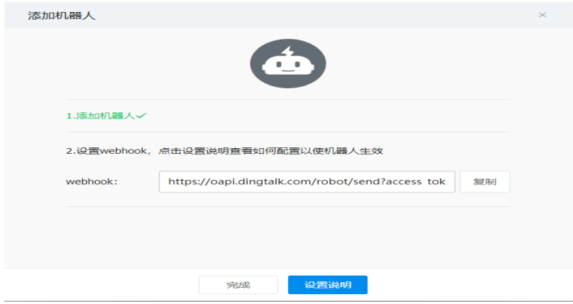 点击“复制”按钮,即可获得这个机器人对应的Webhook地址,其格式如下: