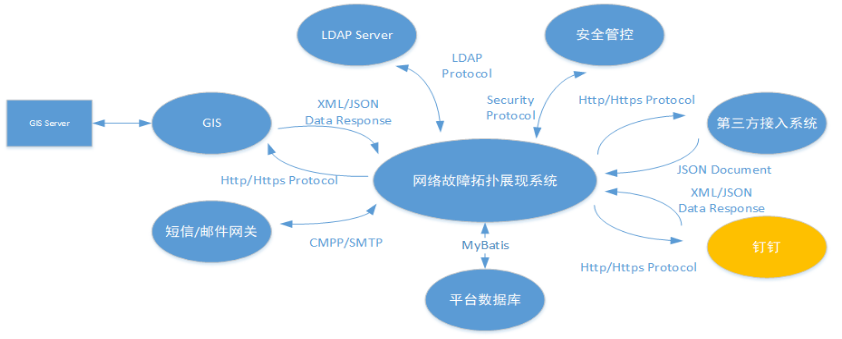 目前贵州联通钉钉群机器人部署在网络拓扑展现系统下,是该系统的一个子模块,实现信息自动统计及信息自动发送等功能。