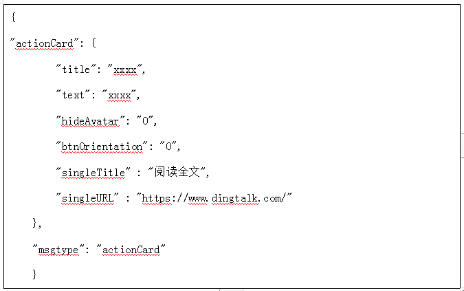 当前自定义机器人支持文本 (text)、连接 (link)、markdown markdown)、ActionCard、FeedCard消息类型,可以根据使用场景选择合适的消息类型,达到最好的展示样式。