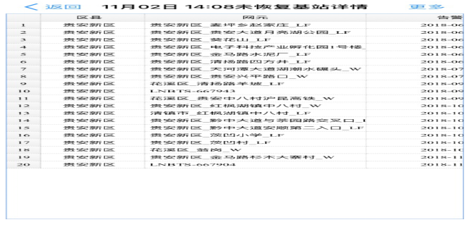 2、单一区县断站数大于等于20个,单独进行提示,显示为:区县名称