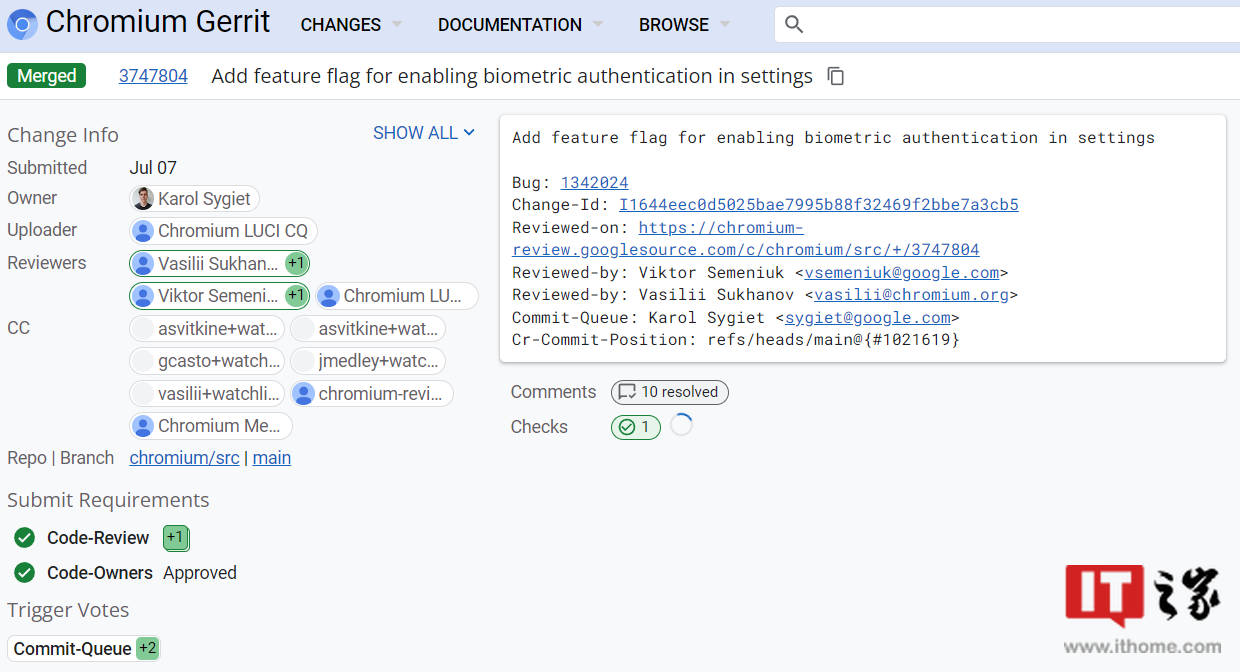 目前,Chrome 浏览器会在打开密码管理器之前要求用户输入电脑密码,生物识别的加入将带来一种更方便的身份验证方法。