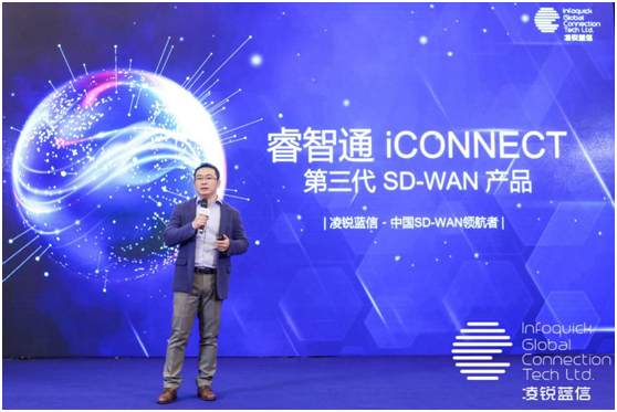 顾总为与会嘉宾介绍了凌锐蓝信目前产品线中的重要环节,睿智通iCONNECT,是一款主打企业内网多分支集中管控和链路优化功能的SD-WAN产品。
