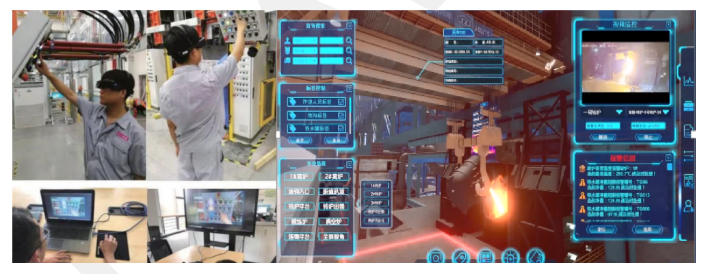 5米宽厚板厂废料车间4台天车完成了5G远程化改造,通过远程人工操控,解除了天车现场操作环节;“无人自动天车及智能调度系统”通过 3D 扫描仪、测距仪等现代传感器和机器视觉技术,对作业区实时建模分析,自动生成调度指令和作业指令,实现自动吊等多项先进功能,调度作业过程完全自动化,无人干预,极大的减少了企业的人力资源成本,提高了生产效率,降低安全风险;来自不同国家的技术工程师通过AR眼镜以及电脑客户端的冻屏、实时标注等功能使得湘钢工程师与欧洲专家克服疫情影响,进行远程无障碍沟通协作。此种创新装配方式,提升了工作效率,节约了由于疫情导致的工程拖延、现场差旅等诸多不可控成本。