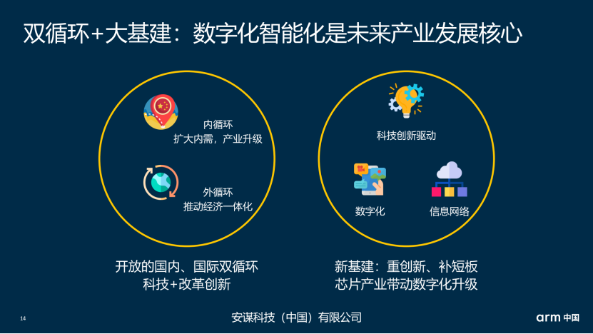最后,展望未来,安谋中国希望在“双循环”和“大基建”的背景下,促进技术创新、带动芯片产业数字化升级。