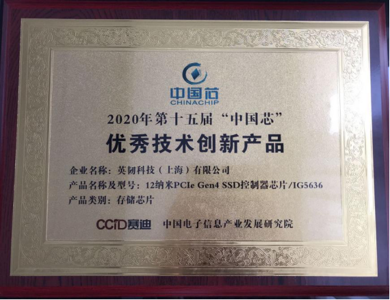 今年10月28日,第十五届“中国芯”集成电路产业促进大会在杭州隆重召开,现场揭晓了第十五届“中国芯”优秀产品征集结果,英韧科技的12纳米PCIe Gen4 SSD控制器芯片Rainier IG5636荣获“中国芯”优秀技术创新产品奖。Rainier IG5636是我国首颗实现量产的12纳米PCIe Gen4存储控制芯片,主要面向数据中心、企业级和高端消费领域应用。