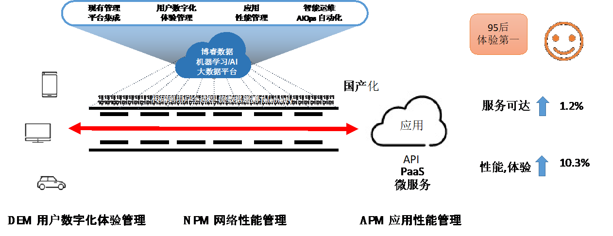 1. “信息整合”:将用户体验数据,网络性能数据,应用性能数据,应用可用性数据等信息整合 实现统一收集,统一存储,统一管理,通过API调用的方式实现一次采集,各部门的多次订阅消费,某客户反馈关于服务可达能力提升时说:1.2%的服务可达提升,可不仅仅是体验提升而已,光数据中心1.2%的耗电节省,就是博睿数据带给我们很大的价值了。