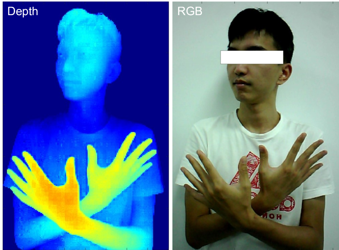 ▲ 左侧为灵眀光子 ADS3003 的人物成像,右侧为同一场景的 RGB 成像,供参考。可见 ADS3003 对于人脸、手势有着良好的传感质量,并对头发等低反射率物体有着卓越的细节捕捉能力。