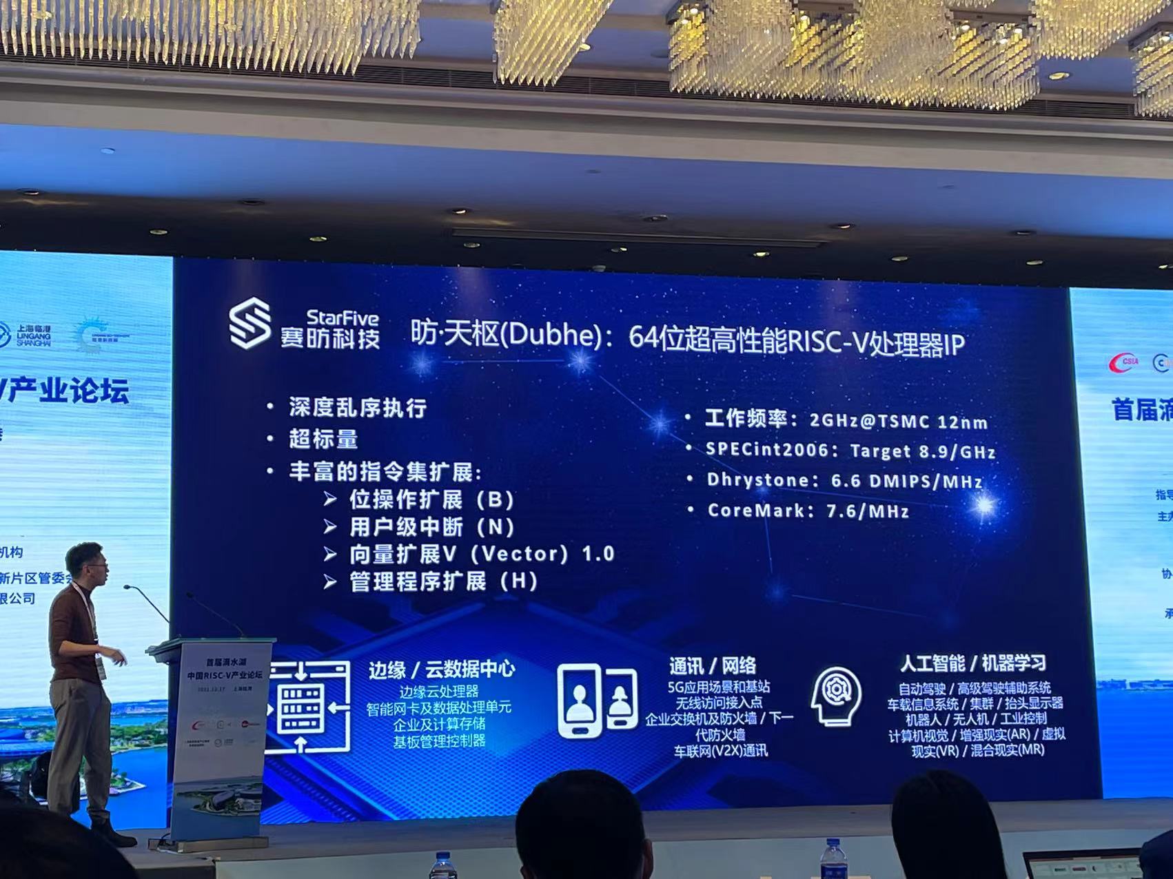 12月17日,首届滴水湖中国RISC-V产业论坛在上海临港举行。会上,赛昉科技资深产品经理 赵晶介绍了高性能RISC-V视觉处理平台 昉·惊鸿7110。