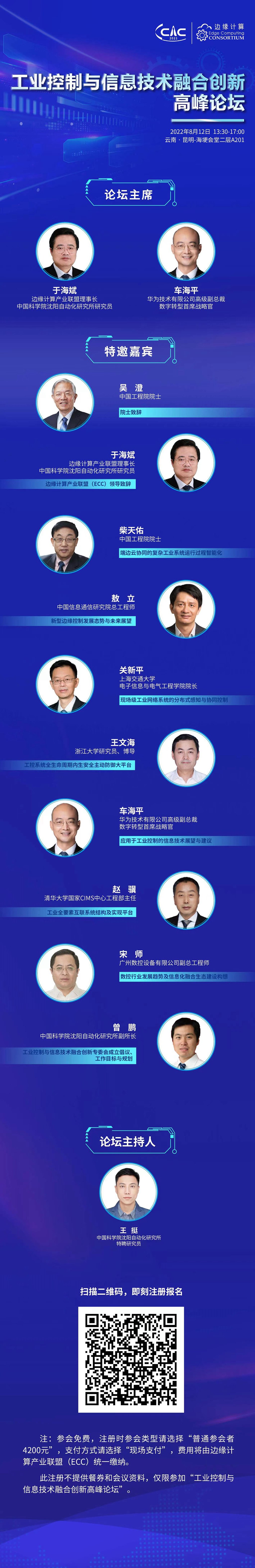 “工业控制与信息技术融合创新高峰论坛”将于2022年8月12日(周五)在云南·昆明-海埂会堂二层A201举办,在此,边缘计算产业联盟(ECC)向您发出诚挚邀请,欢迎莅临现场,共襄盛会!