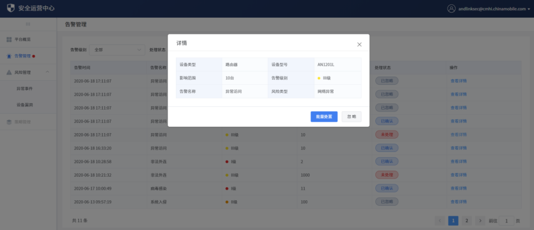 (4)精准识别:通过智能基线、动态风险情报、智能防劫持算法可以有效保护家庭智能设备的安全,实现高危风险识别准确率达到95%。