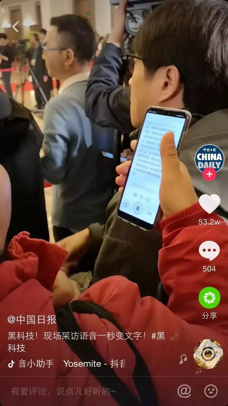 这款语音秒变文字的“神器”是中国日报记者持有的现场视频被上传该媒体的抖音平台后,播放量突破千万,点赞数超过50万。