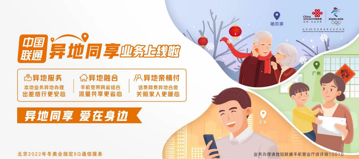 异地融合和异地亲情付这两项业务则主要针对分居两地的家庭。远在外地的子女办理异地融合业务后可以在自己主卡的基础上,为父母办理副卡和宽带,父母可以共享子女手中的语音流量,实现省钱又省心。异地亲情付,即话费网费异地合交。也就是指用户不仅可以交自己话费,还可以为远在外地的父母合账缴费让父母放心使用。
