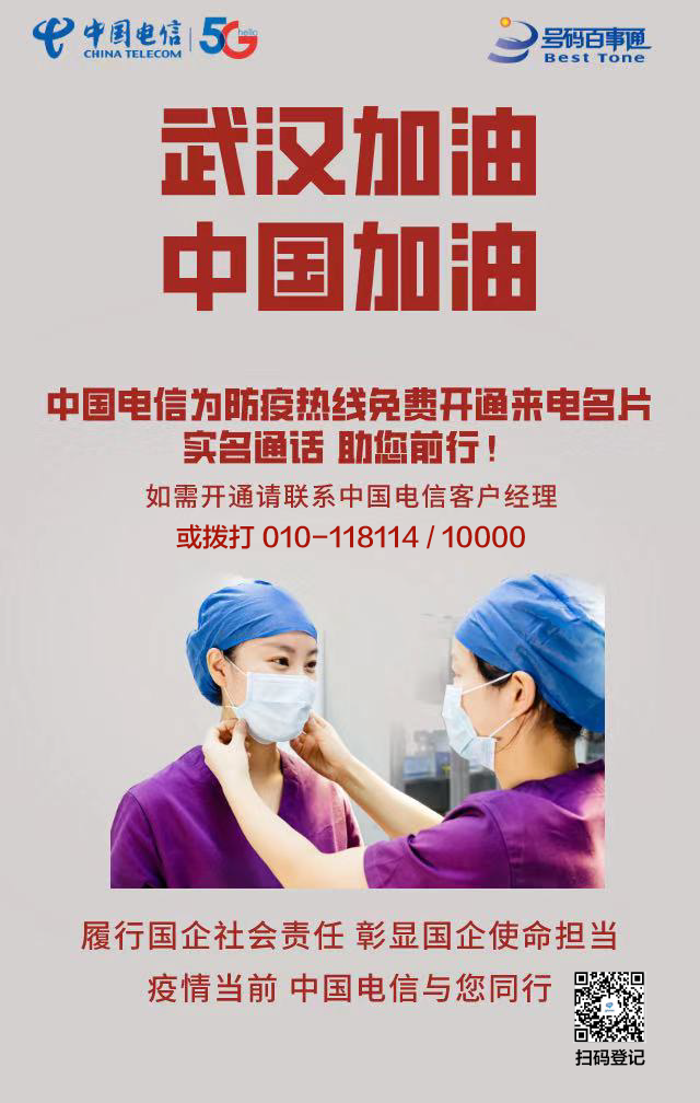 日前,在政府部门的共同努力下,中国电信为社区、街道、居委会工作人员定制了专属的“来电名片”。为确保“来电名片”的及时开通,中国电信北京公司组成专项组,迅速研究制定开通方案,免费提供服务资源,用信息化手段助力抗疫一线,同心协力,共同打赢疫情抗击战。目前,北京疾控中心、定点医院、公安交警等奋战在抗疫一线的很多服务窗口,也都免费得到了这张“名片”。