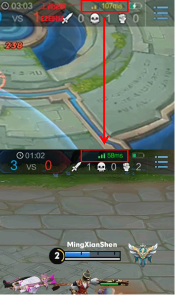 手游加速开启前后效果对比