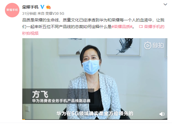 3月15日,包括华为消费者业务手机产品线副总裁方飞在内的多位产品线负责人通过视频发声,邀请网友“云参观”华为内部实验室和生产线。全网网友可于本月16日,通过微博、B站、Vmall等平台,一览华为、荣耀产品从研发到诞生的全流程,感受硬核品质。