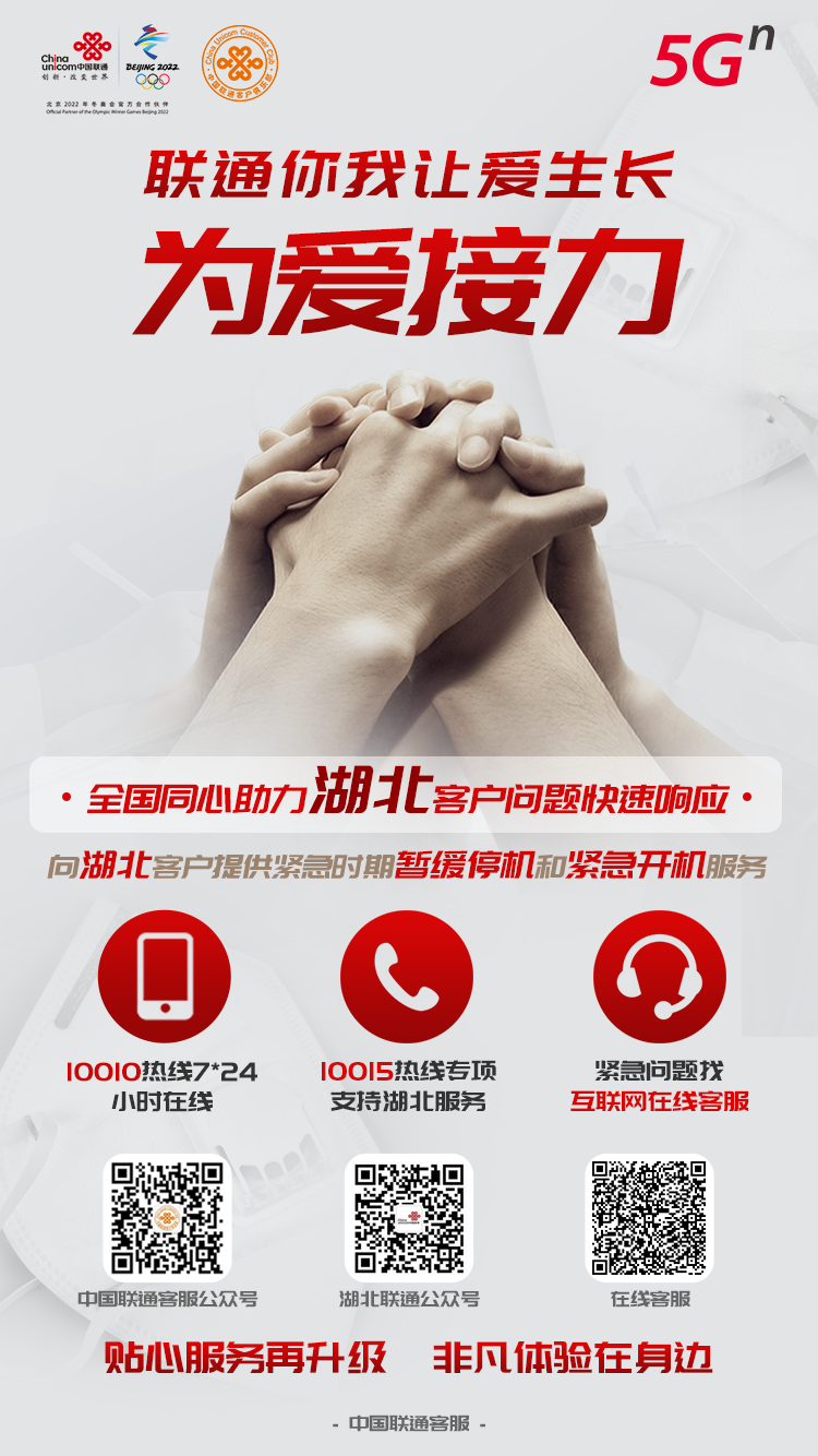 受疫情影响,湖北本地客户业务咨询与求助增多,中国联通10010热线联合10015消费者权益保护热线及互联网在线客服进行7*24小时值守。最大化妥善处理湖北联通客户投诉问题,并为湖北客户提供紧急时期暂缓停机、紧急开机等服务,确保客户感知。