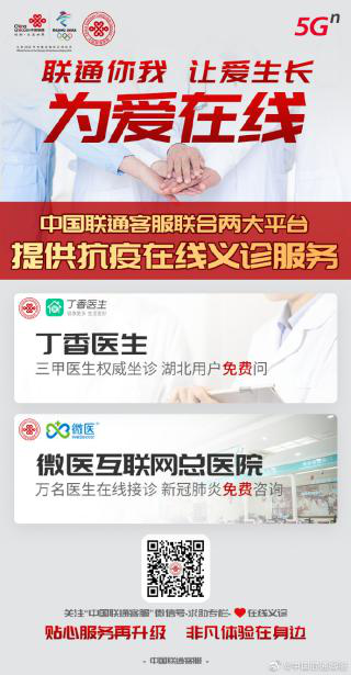 为了给用户提供更多的疫情防范知识,降低在医院就诊交叉感染的风险,中国联通客服微信公众号在线战“疫”,联合丁香医生推出了新冠肺炎在线义诊活动,配有三甲医院医生在线问诊,专人专医,送药上门,免费对湖北用户开放使用。