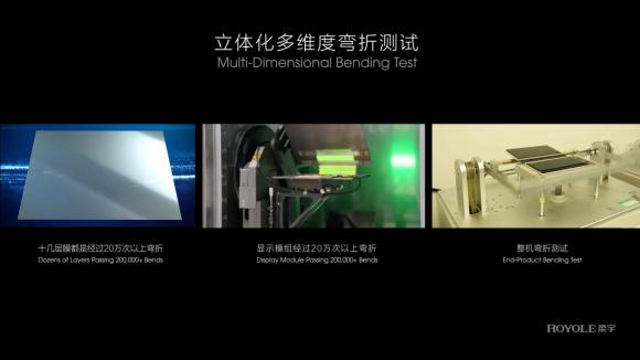 值得一提的是,柔宇这一次推出的第三代蝉翼全柔性屏不仅是一种技术,更加可以是一件量产的屏幕。而且,柔宇从器件材料、柔性面板和终端设备三个方面,对第三代蝉翼柔性屏进行了无数次立体多维测试。例如,柔宇不仅对近百种折叠材料独立进行了 20 万次以上的弯折测试,还同时对完整的显示模组、铰链和整机进行了 20 万次以上的弯折实验。在坚持努力之下,终于找到了时下最佳的解决方案,全面提升了柔性屏可靠性和使用体验,并将弯折半径做到了最小仅可为 1mm。