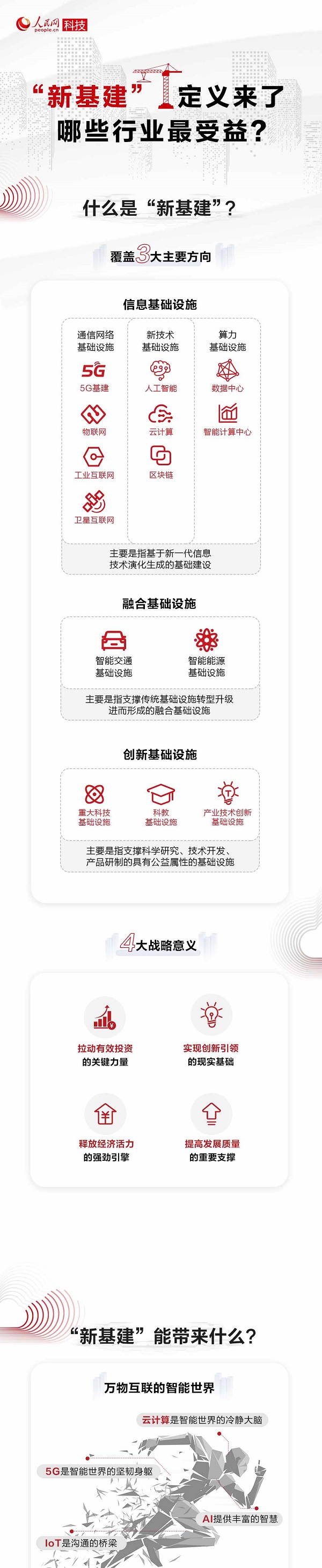 可以说,国家此时启动“新基建”,意义重大。短期来说,“新基建”有助于扩大需求、稳增长、稳就业;放眼长远,“新基建”作为信息社会的基石、数字经济的支撑,有助于释放中国经济增长潜力,提升持续竞争力,改善民生福利,成为推动经济高质量发展的重要引擎,最终将构建一个万物互联的智能世界。