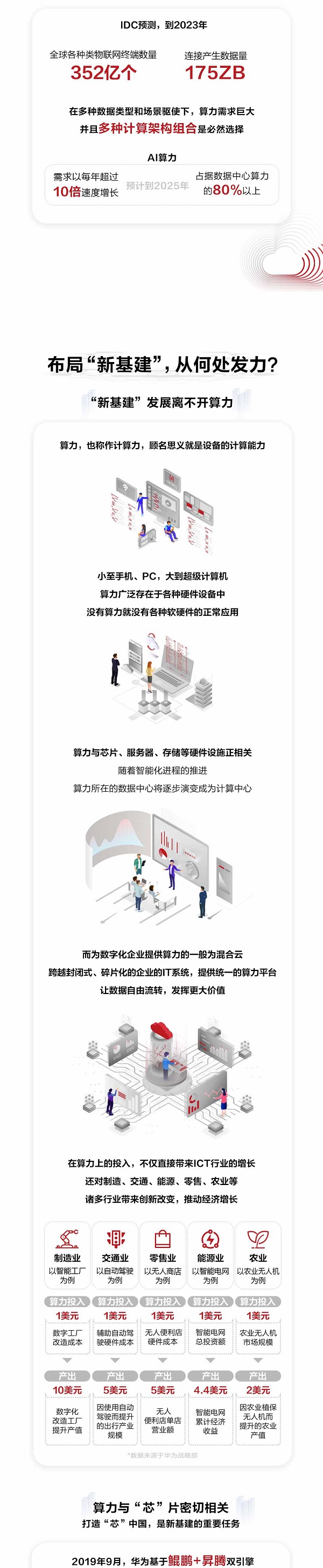 随着“新基建”的提速换挡,布局“新基建”该从何处发力?《“新基建”定义来了,哪些行业最受益?》告诉我们,“新基建”的发展离不开算力,而算力与芯片、服务器等硬件设施密切相关,这与华为的观点不谋而合。华为认为:“新基建”的内涵包括了“联接”和“计算”两个部分,联接是基础,计算是核心。而在这两个方面积累深厚的企业,也必将在“新基建”领域抢占先机。