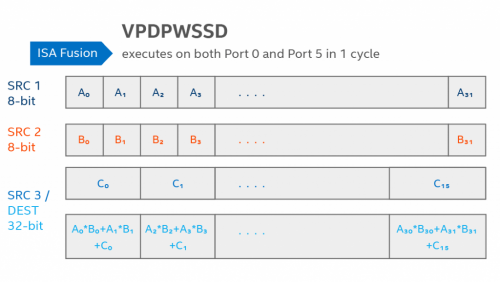 通过VNNI的VPDPWSSD指令完成过去三条指令才能完成的int8相乘与int32累加操作。