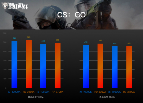 《CS:GO》是V社维尔福的金字招牌,FPS电竞游戏常青树,拥有大量的热衷粉丝。对于一个全民电竞游戏来说,硬件门槛过高会造成玩家流失。这也是为数不多对多核做了特别优化的游戏,所以在跑分测试中可见AMD跑分有所胜出,但英特尔CPU在高分辨率情况下也拉回不少差距。