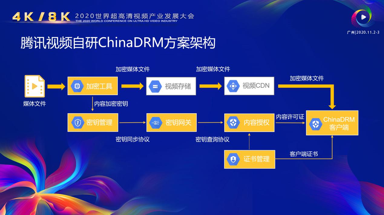 深圳市腾讯计算机系统有限公司腾讯视频点播和直播平台负责人刘琦为参会成员介绍了腾讯视频自研的ChinaDRM方案架构,该架构遵循了ChinaDRM2.0标准所建议的参考实现。