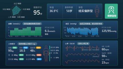 目前,中国移动爱家健康平台已引入健康硬件20余款,硬件类型覆盖血压、血糖、心率、体温、体脂、血氧六项,合作厂商包含乐心、鱼跃、卡帕奇、鼎泰等10多家厂商,后续也将引入更多的厂商与硬件产品。中国移动爱家健康平台将优选健康硬件产品与大屏、老年伴侣、小程序等端口进行连接,使健康监测变得智能便捷。