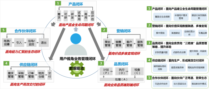为加速形成能力集中建设、平台集中运营、业务集中支撑的家庭运营工作体系,构建五位一体的闭环运营流程体系,围绕产品、营销、品质、供应链、合作伙伴,以数据驱动实现运营统筹支撑集约,一点响应市场需求,输血全网提升价值。