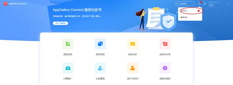 不过即便如此,审核阶段依然难免被拒,AppGallery Connect还提供了互动中心功能,帮助开发者进一步了解被拒原因。当游戏和应用审核被拒之后,开发者可以在互动中心收到改进建议以及拒绝原因,并可以直接在互动中心回复消息进一步咨询相关情况。可以说,互动中心丰富了开发者和平台运营的沟通渠道,增强了信息交互的及时性。互动中心展示位置(页面右上角铃铛图示,见下图),点击后跳转到互动中心页面,即可与平台运营、审核人员在线互动交流。