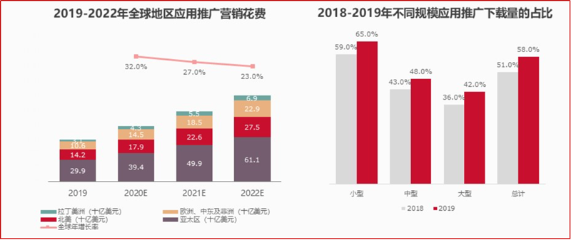 触达到用户是第一步,触动更多用户则是第二步。而要想触动更多用户一定离不开应用的营销推广。根据AppsFlyer数据,2020年全球应用推广营销花费约为761亿美元,同比增长32%。另一数据是非自然安装量占总安装量的比例不断增加,甚至65%的小型App下载量都是靠移动营销推动的。