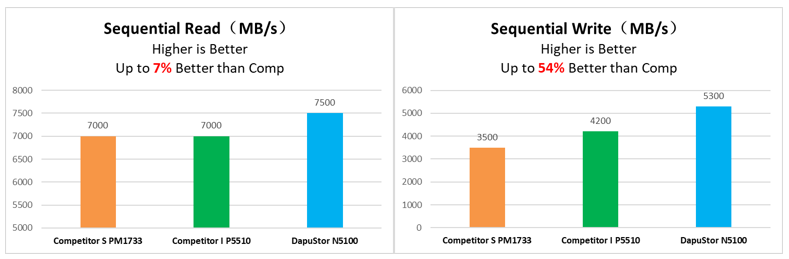 在与国际头部厂商的新品对比中,我们看到Nida5性能全方位领先,凸显DapuStor强大的创新能力和广阔的发展潜力:产品随机读写速度比国际友商大幅领先100%,顺序读写也超越友商高达54%。据了解,目前主流的服务器还是PCIe Gen3接口,Intel公司将在今年上半年发布支持PCIe Gen4的服务器CPU,预计一线服务器厂商和互联网巨头将会在今年下半年逐步使用PCIe Gen4平台,届时PCIe Gen4 SSD产品将会供不应求。Nida5优异的产品性能,无疑将帮助DapuStor在PCIe Gen4平台上占据不小的优势。