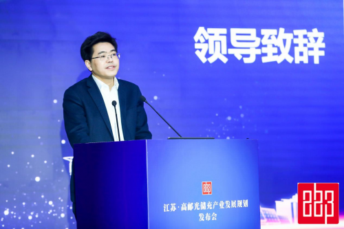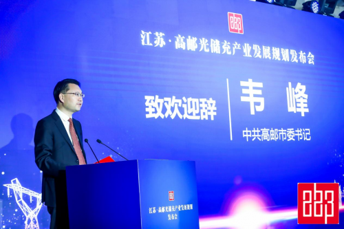 韦峰在致辞中称,去年以来,高邮市坚定贯彻落实总书记视察江苏、视察扬州重要讲话指示精神,紧扣习总书记关于“四个革命、一个合作”的能源发展思想,紧跟国家“节约、清洁、安全”的能源发展方向,紧盯“碳达峰、碳中和”的双碳目标,集聚全市资源、汇聚最强力量,倾力打造光储充产业。建立了“五个一”推进机制,成功招引落户中节能、中环艾能、航天数联、新能易事特、赛得能源等一批引领性、标杆性项目,为光储充产业2025年开票销售冲刺500亿元打下坚实基础。