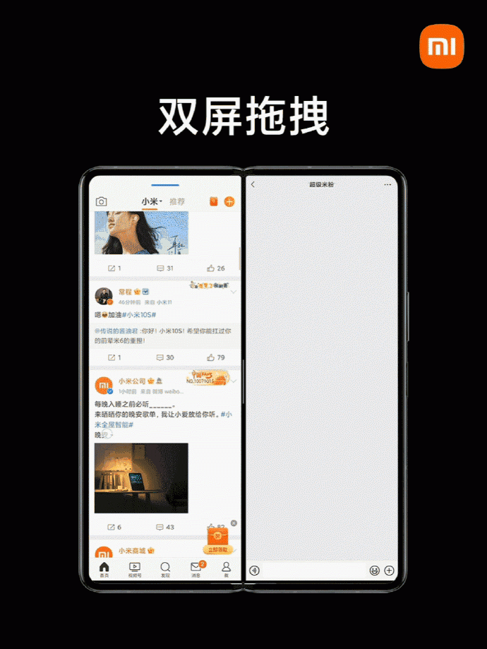 同时,针对文件编辑等场景,小米折叠屏MIX FOLD也与WPS进行了深度的适配和优化。除了更完美的支持各类文件编辑功能之外,还能够像使用鼠标一般,轻按文件并在多个窗口间自由拖拽传输,畅享笔记本般的流畅体验。