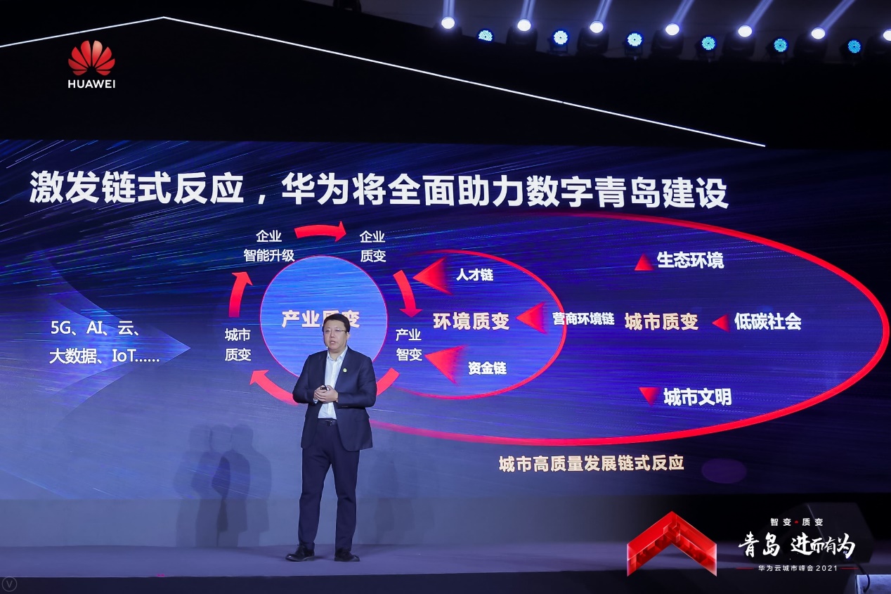 5月13日“青岛·进而有为 华为云城市峰会2021”,华为公司高级副总裁、中国地区部总裁鲁勇发表主题演讲:“十四五开局之年,青岛提出“六个率先”,明确了城市高质量发展的新目标,面向未来,华为将助力青岛城市智能升级,激发链式反应,打造青岛世界工业互联网和全球海洋中心城市的‘新基准’。”