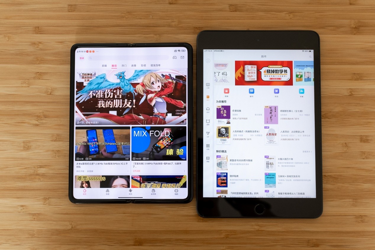 对于折叠屏幕的手机,大家一直比较关心的都集中在大屏幕带来的不同操作体验。这方面小米MIX FOLD的确是比较突出的。按照小米官方说法MIX FOLD 8.01英寸的屏幕比iPad mini还要大上一圈,比较之下的确是大了一圈,虽然屏幕大小的差别算不上太大,但是考虑iPad mini那个祖传的大黑边框,小米MIX FOLD的尺寸可以说相当吸引人,更别说还能折叠放在兜里。这一点是任何Pad都无法完成的任务。