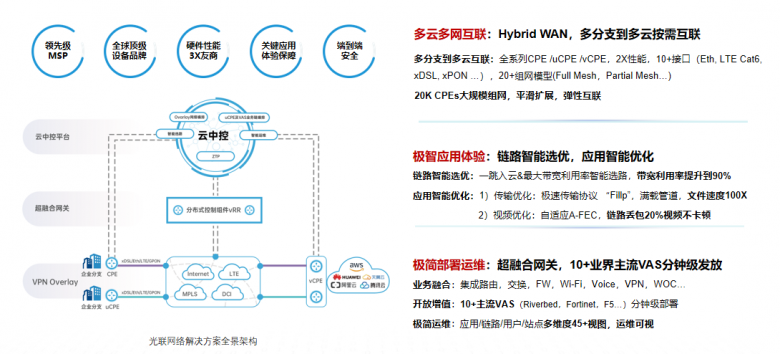云时代下,很多“前店后厂”模式的制造企业,门店大量应用开始从数据中心向云端迁移,SD-WAN提升了网络的灵活性,帮助企业门店网络一跳入云,更有vCPE在云端部署。同时,企业网络基础架构开始发生变化,网络从辅助业务转变为核心业务驱动因素,传统制造企业网络已难以满足业务全场景互联的需求,面临带宽需求激增、组网场景多样、应用数量暴增、网络运维复杂等新挑战。作为资深企业网络服务商,光联集团基于自有的高品质骨干网,为制造企业提供全场景的智能网络服务,能够进一步支撑制造业多元化业务场景的接入。