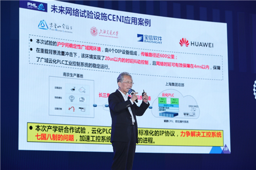 在第五届未来网络发展大会期间,华为携手紫金山实验室、上海交通大学、宝信软件正式发布了全球首个广域云化PLC(可编程控制器)技术试验成果。本次试验基于确定性广域网技术和下一代工业控制边缘计算架构,在CENI(未来网络试验设施)上实现了沪宁两地间传输距离近600公里的广域云化PLC工业控制系统的部署和稳定运行,为广域远程工业控制系统的应用铺平了道路。