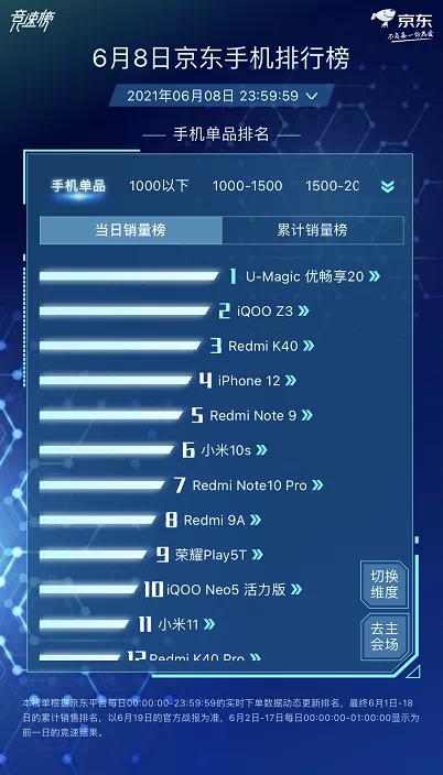 6月8日U-MAGIC品牌盛典期间,优畅享20系列全天霸榜,一度斩获当天京东手机销售单品和当天京东手机1500-2000价位段销售双冠军。活动期间,U-MAGIC优畅享20手机全系直降100元,成交价格低至1599元起,此外还赠送中国联通专属大流量卡,吸引了不少年轻消费者下单购买。