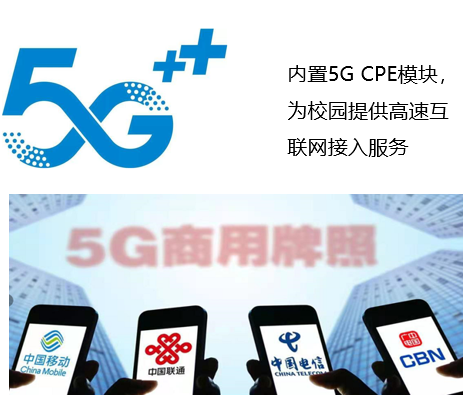 为教室提供高速互联网接入服务,5G网络支持n1/n28/n41/n77/n78/n79全网通接入,兼容4G/3G网络。下行速率最高可达2Gbps,上行速率最高可达1Gbps。