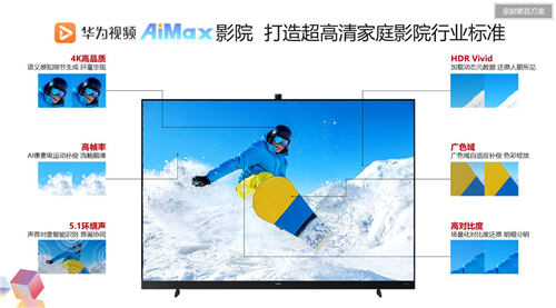 行业标准的超高清家庭影院:在模块化解决方案部分,华为视频推出了Aimax影院的解决方案。Aimax影院为广大用户提供家庭影院级的极致体验。